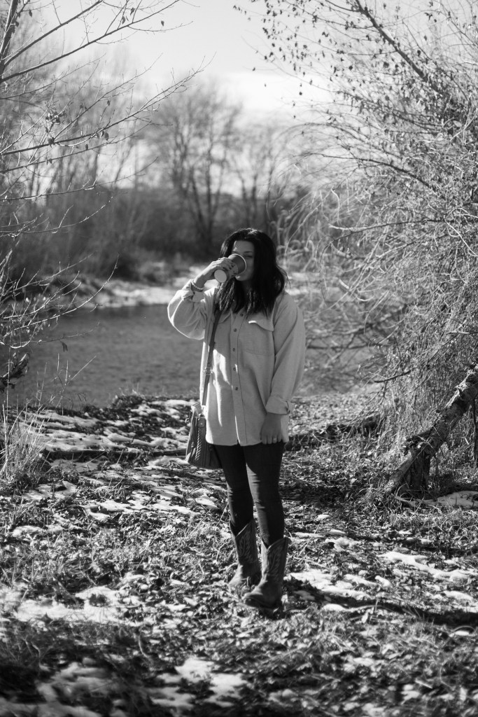 We’re still holding onto some of the last warm days of fall here in East Idaho. It’s the kind of weather that makes you want a jacket in the morning, but by midday you’ll see people out in shorts and t-shirts. This morning we went out to get some drinks from our favorite local coffee shop called June’s Place, and then headed to CAL Ranch to pick up a few things. My go-to drink lately has been a hot chai with vanilla, the best drink to warm me up on these cool fall days. If you’ve never heard of CAL Ranch, think of it like a western Menards – for those of you from the midwest haha. Right by CAL Ranch, there’s a cute little woodsy path on the South Teton River that we stopped to see, and snapped some pics!